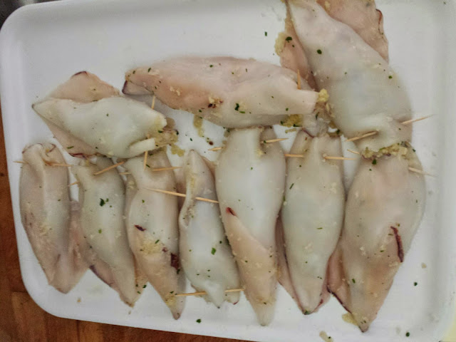 torniamo ai nostri calamari ripieni e disponiamoli sulla griglia del bbq, lasciandoli cuocere per bene